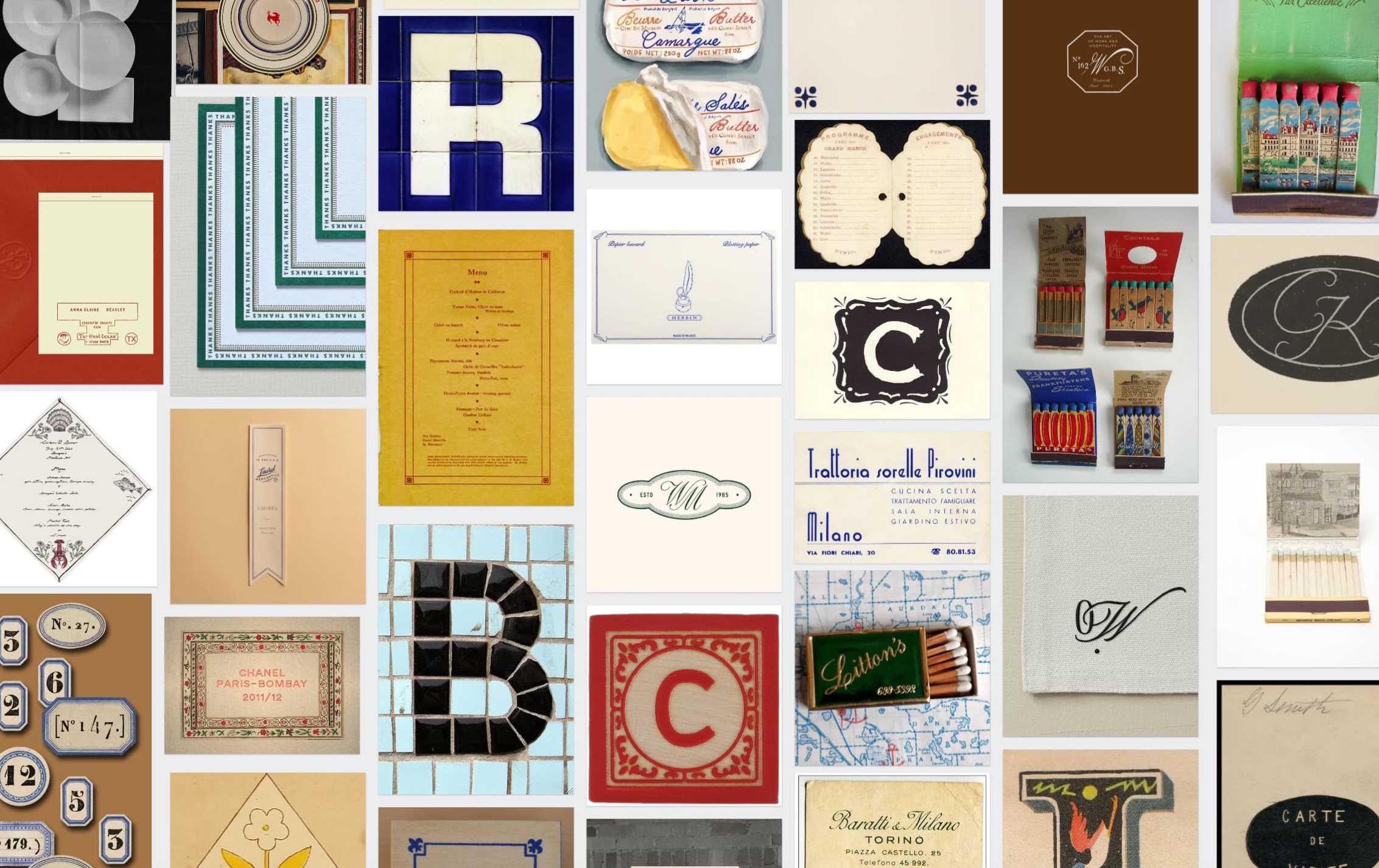 Our graphic and typographic research pulls from vintage Italian café and restaurant ephemera — menus, matchbooks, receipt stamps, monogram seals, and tiled letterforms. These references use elegant typography, ornamental borders, and rich paper textures, creating a visual language that feels heritage-driven yet modern and elevated.